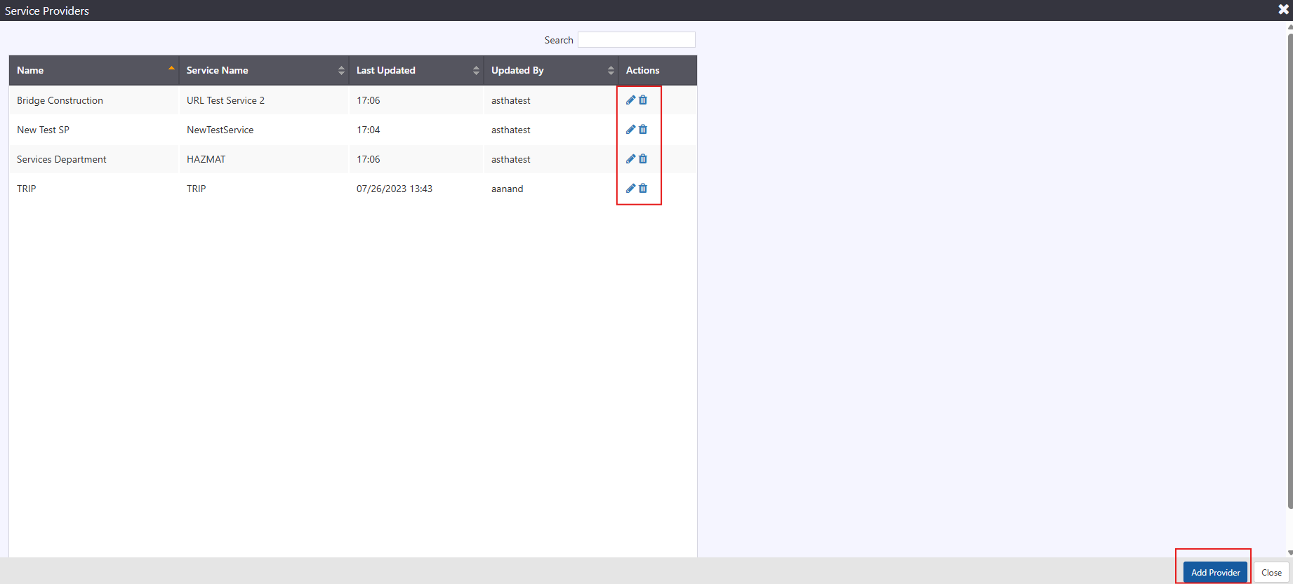 Click Save to add the new Service Provider to the list. In the Service Providers window, the right two buttons of a given Service Provider can be clicked to edit ( ) or delete (