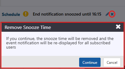 Users can remove the snooze option by clicking the icon in the Event Details view.